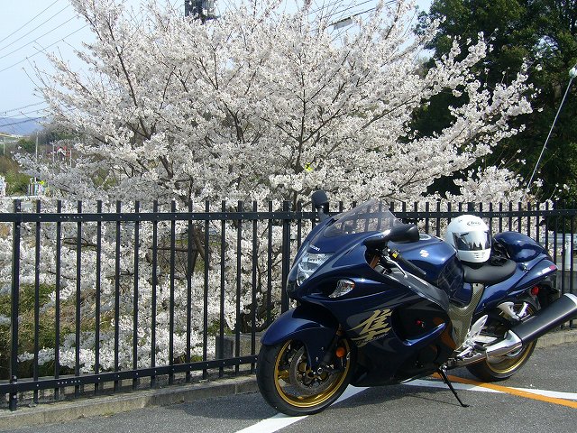 途中いろいろ横道にそれて走ったら、桜が満開の場所に出くわした。