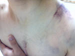 翌日は転倒で接触した箇所すべてが大なり小なり痛む。