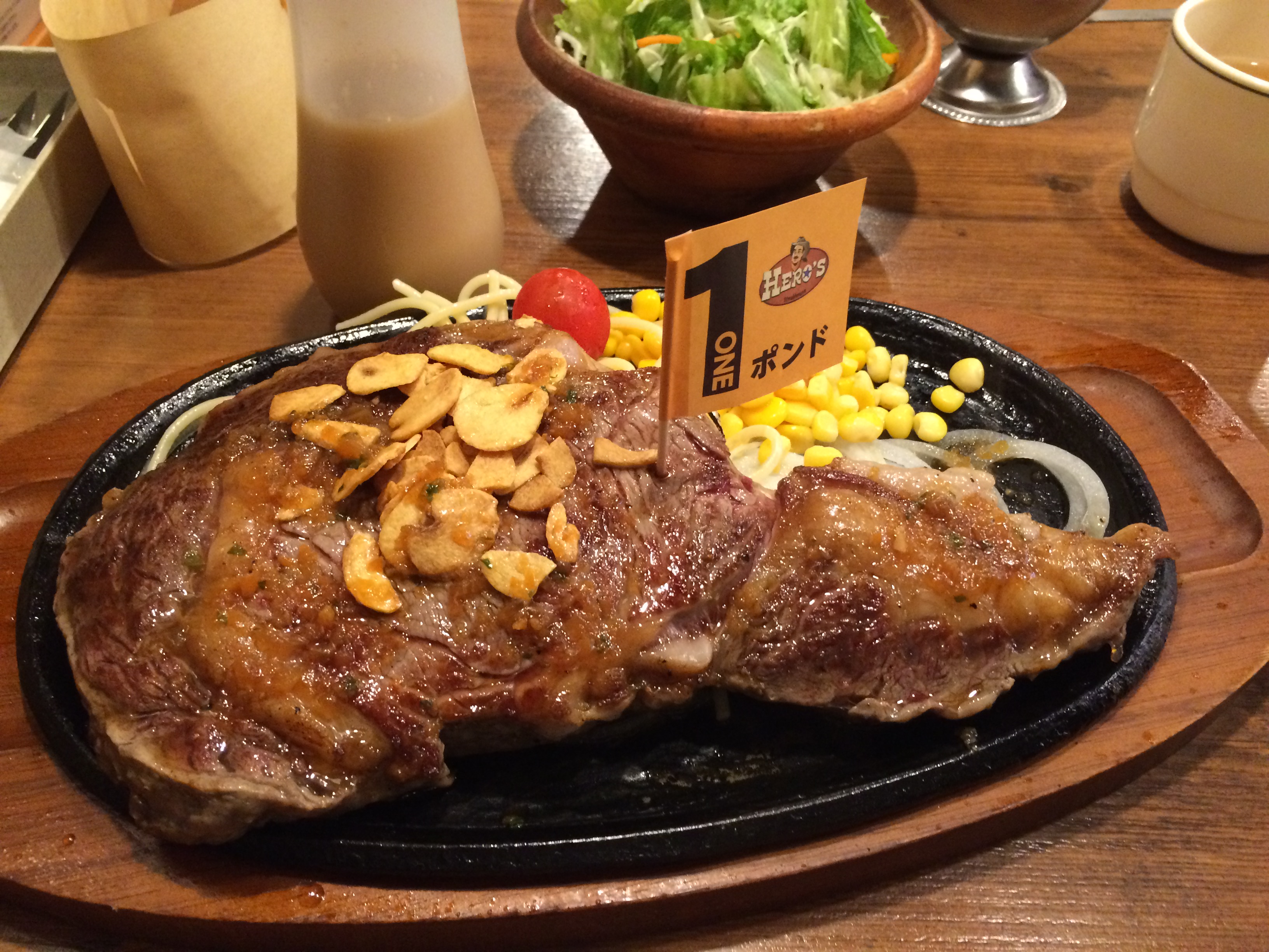 昼飯は、アキバのヒーローズの1ポンドステーキ。