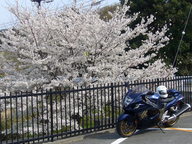 途中いろいろ横道にそれて走ったら、桜が満開の場所に出くわした。